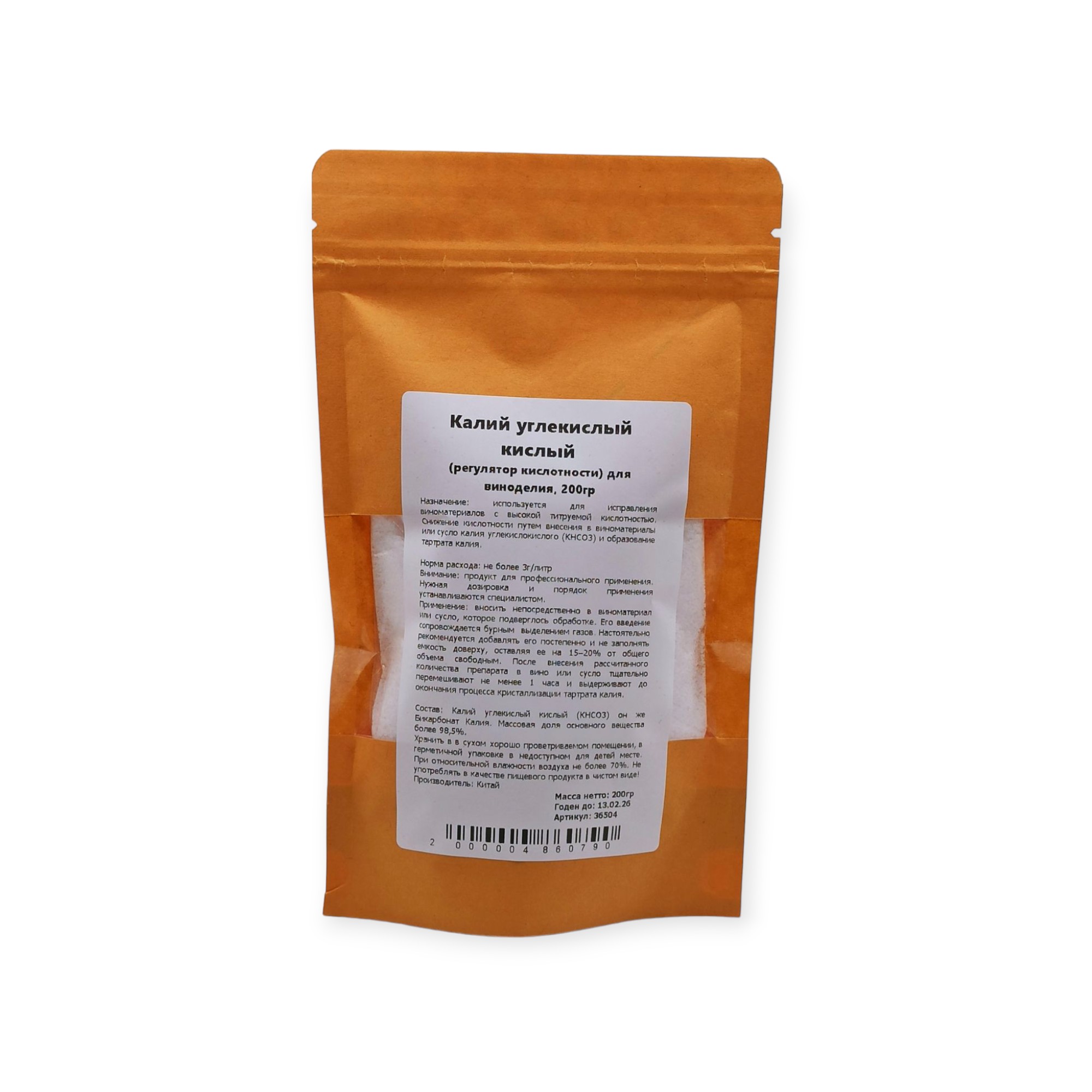 Калий углекислый кислый, 200 грамм